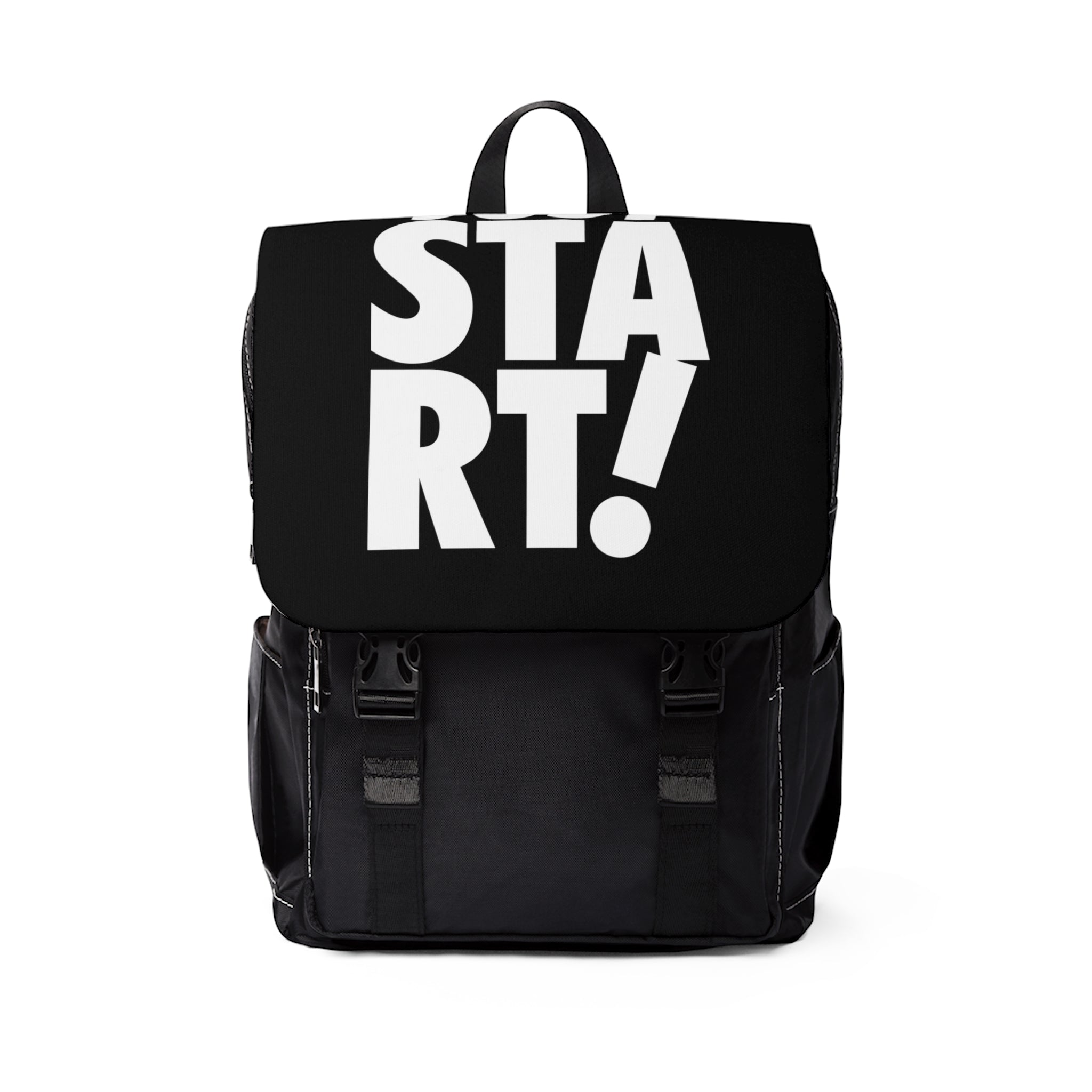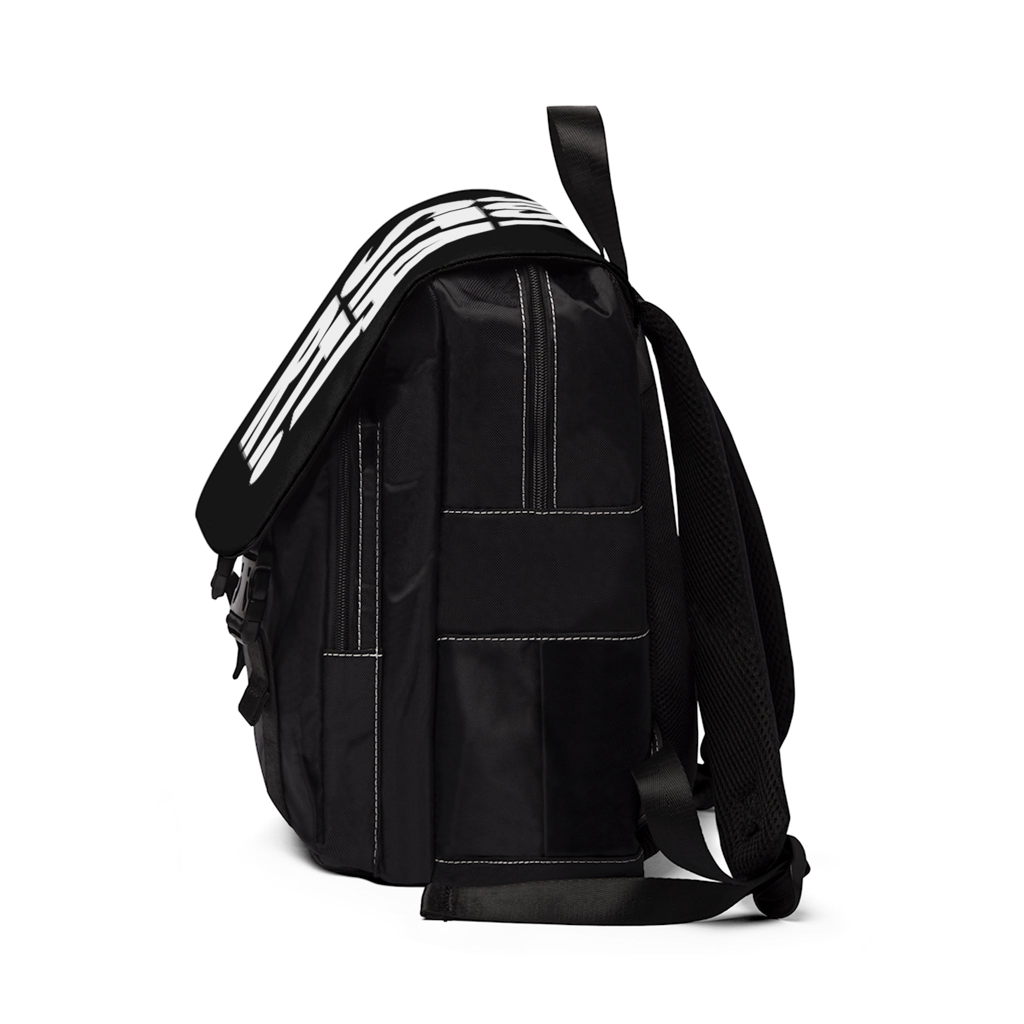 Casual backpack in a classic shape with a front flap design. It is made of durable Oxford canvas. It has two slip interior pockets and one laptop sleeve in the main compartment, a front zipper pocket, and two side pockets.